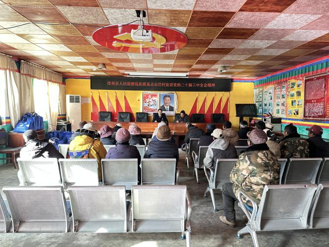 为深入学习贯彻党的二十大和二十届历次全会精神,推动全会精神在基层落地生根,12月18日上午,我院党组副书记、副检察长达娃深入乃西乡定巴村开展党课宣讲活动,将党的声音传递到基层一线,助力村居法治建设与全面发展。同时向群众发放宣传资料及物品200余份。@